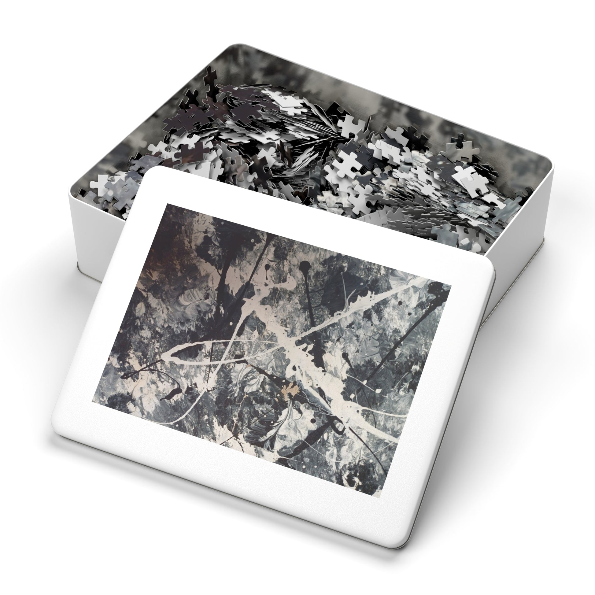 Abstract Black & White Jigsaw Puzzle with Tin. 6 variants upto 2000 pieces.