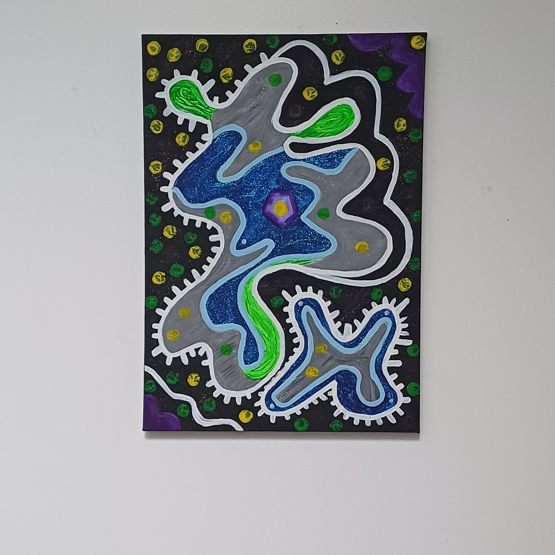 An abstract painting that brings vibrant energy and artistic expression to any space. This unique piece features bold brushstrokes and captivating colours that create visual interest and depth.
