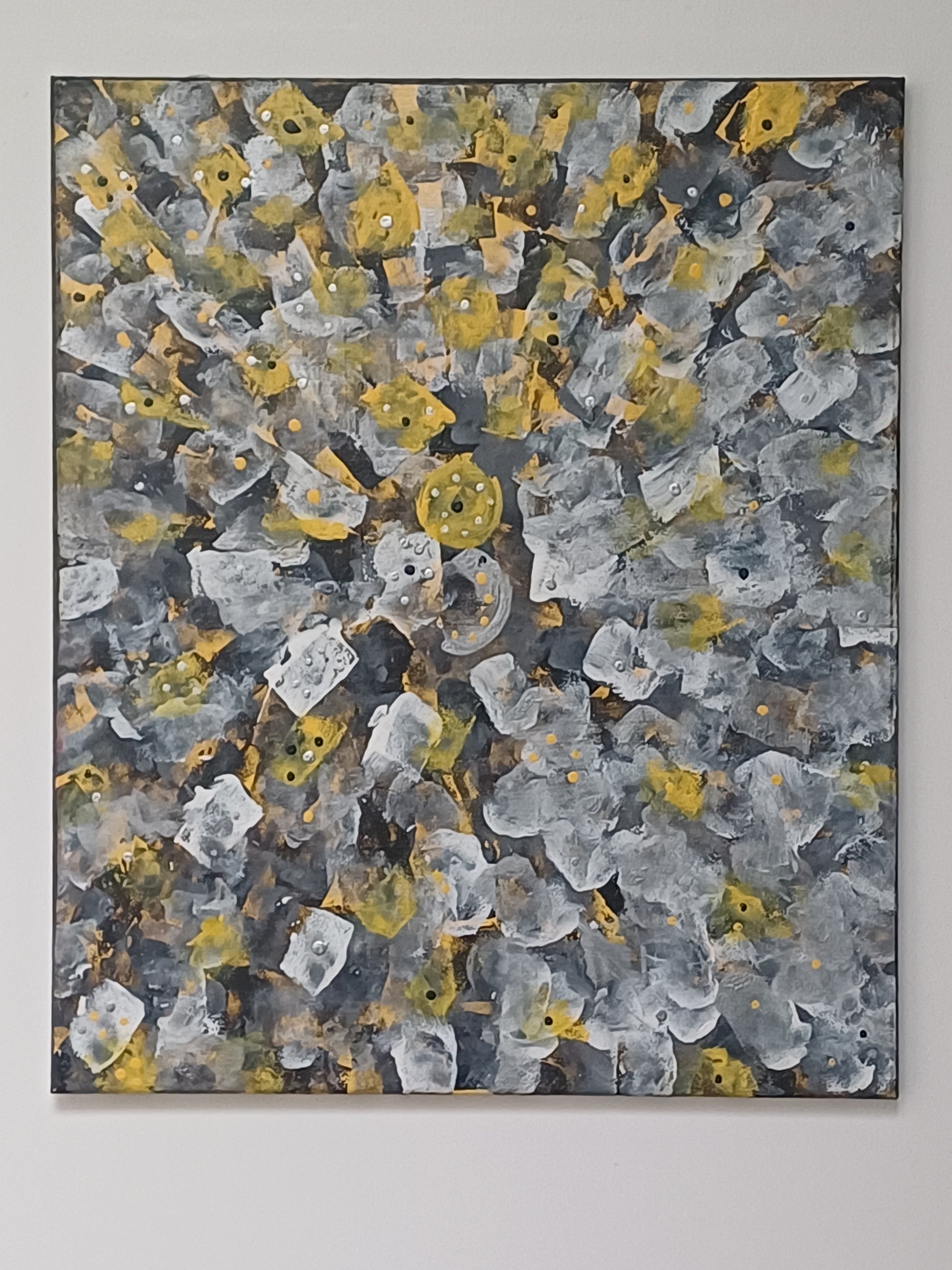 This was created in 2010, an is the part of the mini collection. Acrylic on Canvas and the size is 18x24" or 46x61cm.